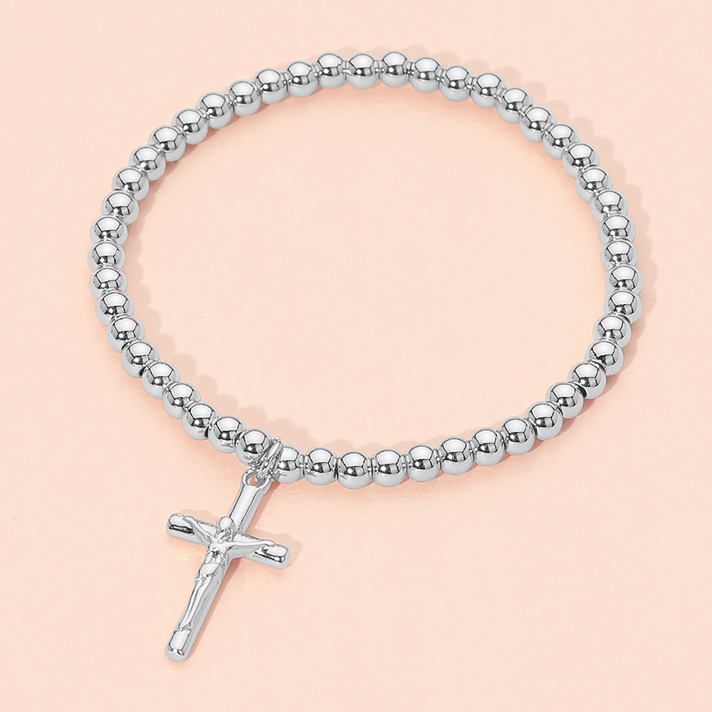 Details • Size : 0.1" H • Charm Size : 0.5" X 0.8" • Stretchable • This cross charm beaded stretch bracelet features a classic cross charm paired with smooth round beads for a clean, meaningful look. Designed with a comfortable stretch fit, it’s ideal for everyday wear, layering, faith-inspired gifting, boutique collections, and customers seeking timeless symbolic jewelry. • Stainless Steel