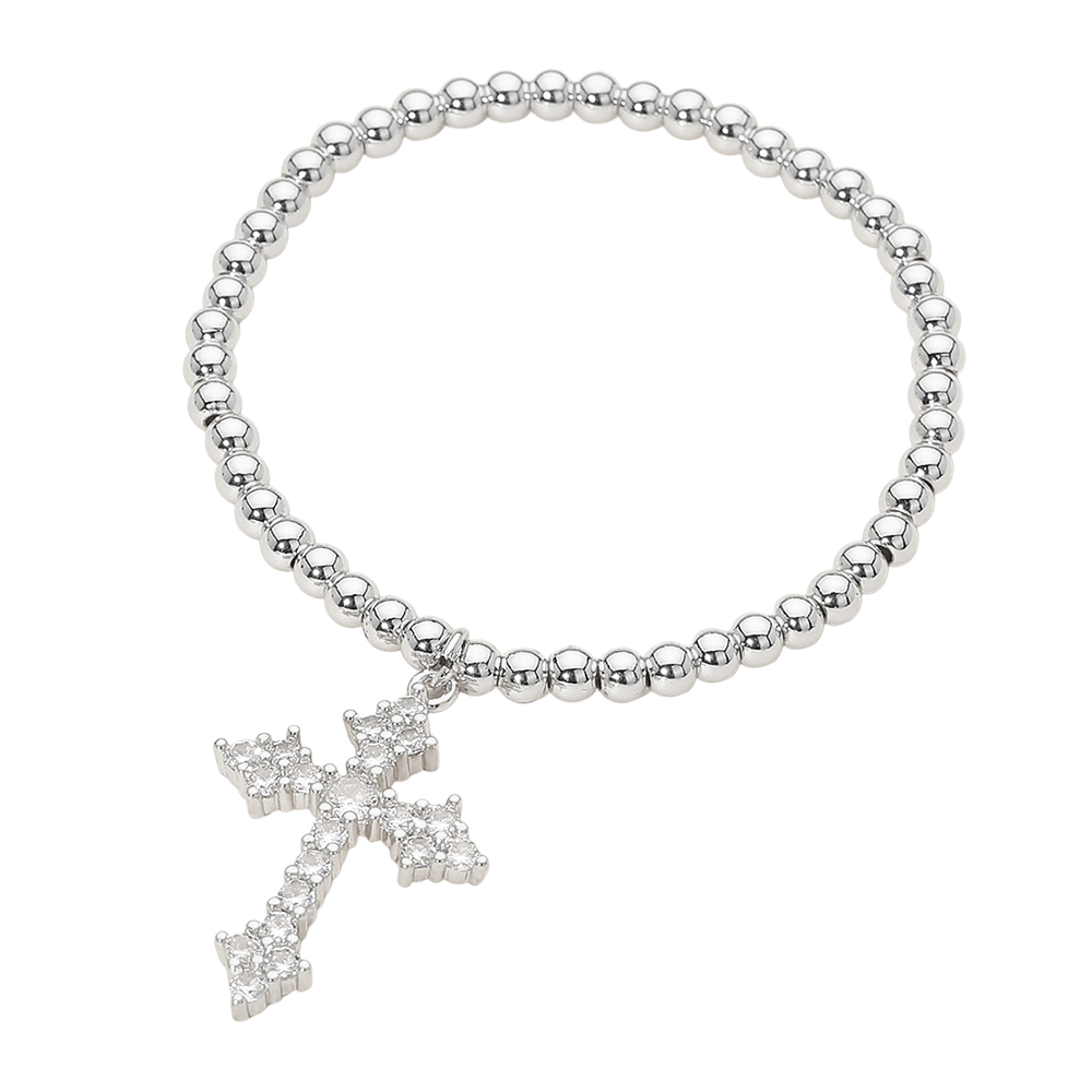 Details • Size : 0.1" H • Charm Size : 0.8" X 1.25" • Stretchable • This cross charm beaded stretch bracelet features a classic faith-inspired charm paired with smooth round beads for a clean, elegant look. Designed with a comfortable stretch fit for easy wear, it’s ideal for everyday styling, meaningful gifting, church events, and boutique accessory collections. • CZ Cubic Zirconia • Stainless Steel