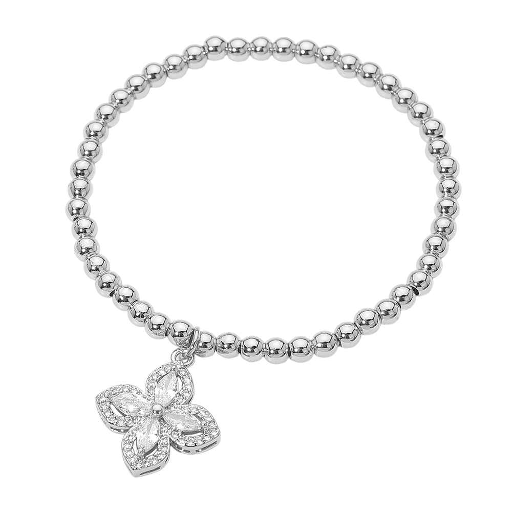 Stainless Steel CZ Flower Charm Beaded Stretch Bracelet Stainless Steel CZ Flower Charm Beaded Stretch Bracelet Stainless Steel CZ Flower Charm Beaded Stretch Bracelet