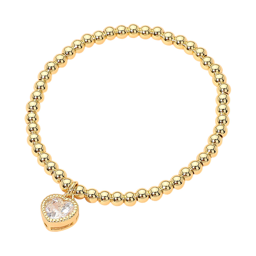 Details • Size : 0.1" H • Charm Size : 0.3" L • Stretchable • Elegant beaded bracelet featuring a heart charm adorned with a crystal-studded half and a smooth pearl finish. A timeless design perfect for romantic gifts or adding a charming detail to your look. • Lead and Nickel Compliant • Stainless Steel