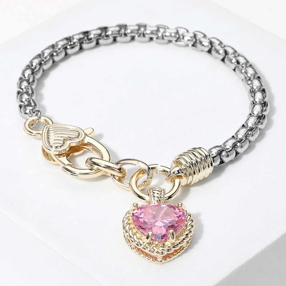 Two Tone CZ Stone Heart Charm Bracelet Two Tone CZ Stone Heart Charm Bracelet Two Tone CZ Stone Heart Charm Bracelet