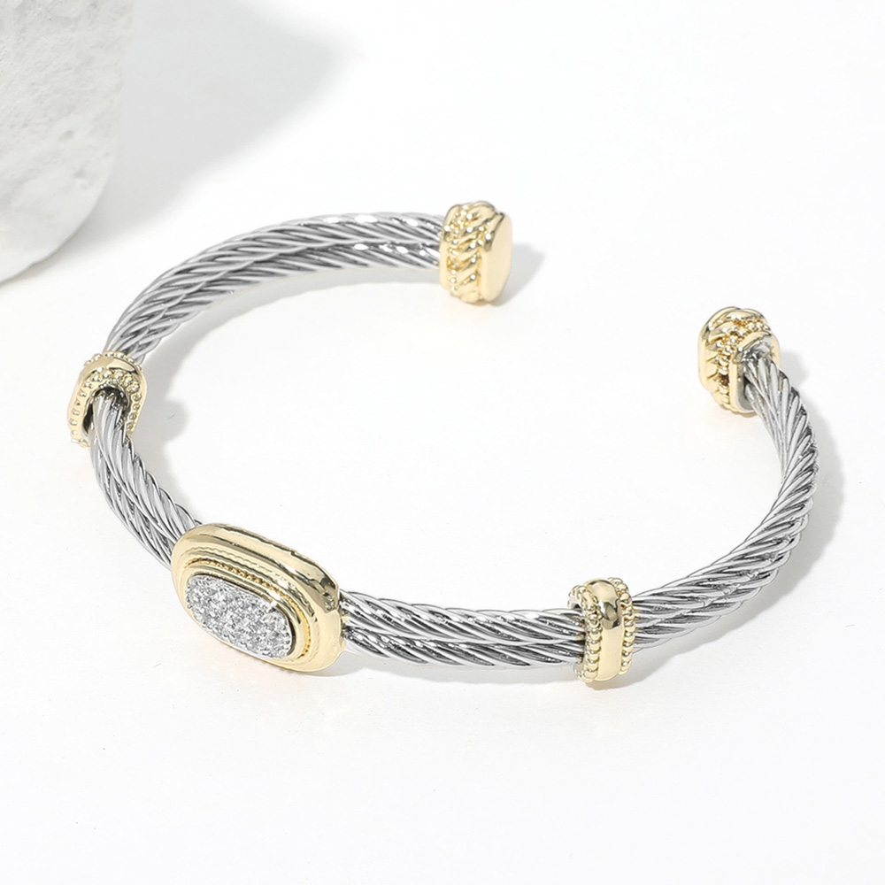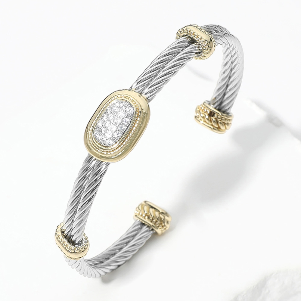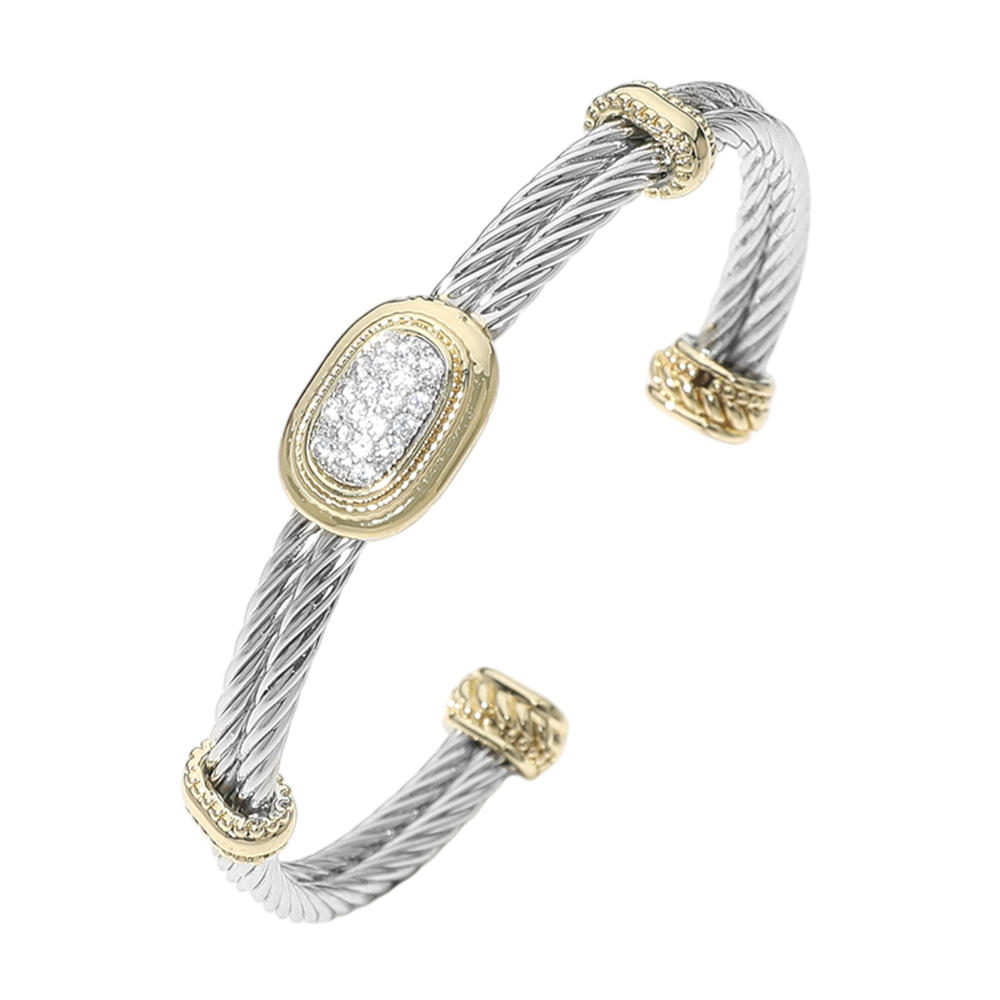Details • Size : 0.3" H, 2.25" D • Cuff • Enhance any look with this elegant cable cuff bracelet featuring a sleek twisted band and shimmering crystal accents. Designed for versatile wear, it offers a refined yet modern touch that pairs perfectly with both casual and formal styles, making it an effortless accessory staple. • CZ Cubic Zirconia