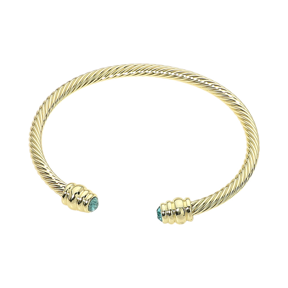 14K Gold Plated CZ Stone Tip Twisted Cable Cuff Bracelet
