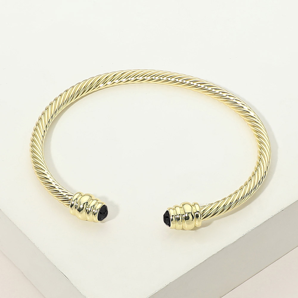 14K Gold Plated CZ Stone Tip Twisted Cable Cuff Bracelet