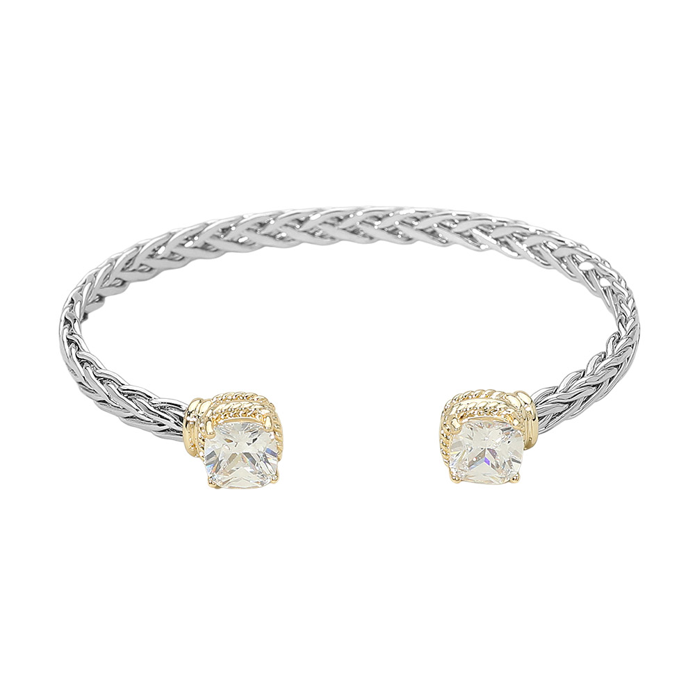 14K Gold Plated CZ Stone Tip Two Tone Braided Cuff Bracelet 14K Gold Plated CZ Stone Tip Two Tone Braided Cuff Bracelet 14K Gold Plated CZ Stone Tip Two Tone Braided Cuff Bracelet