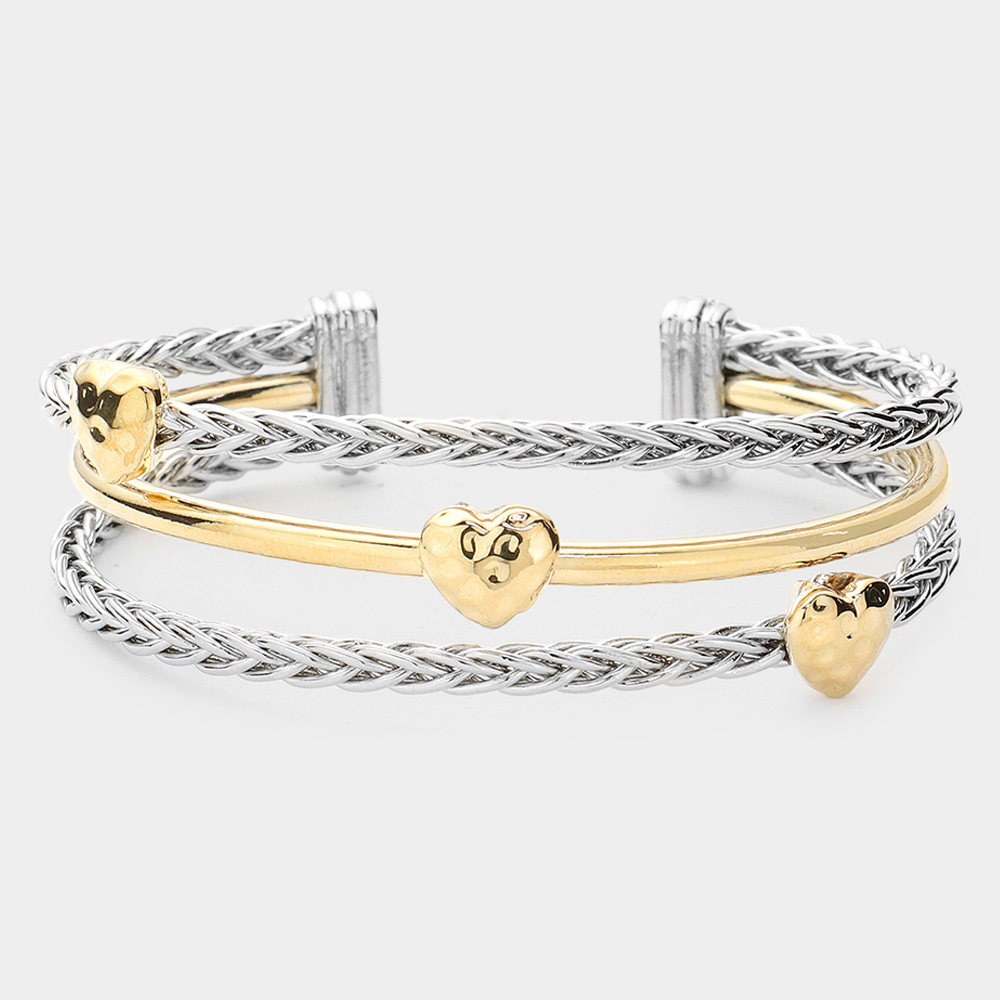 14K Gold Plated Hammered Metal Heart Split Cuff Bracelet