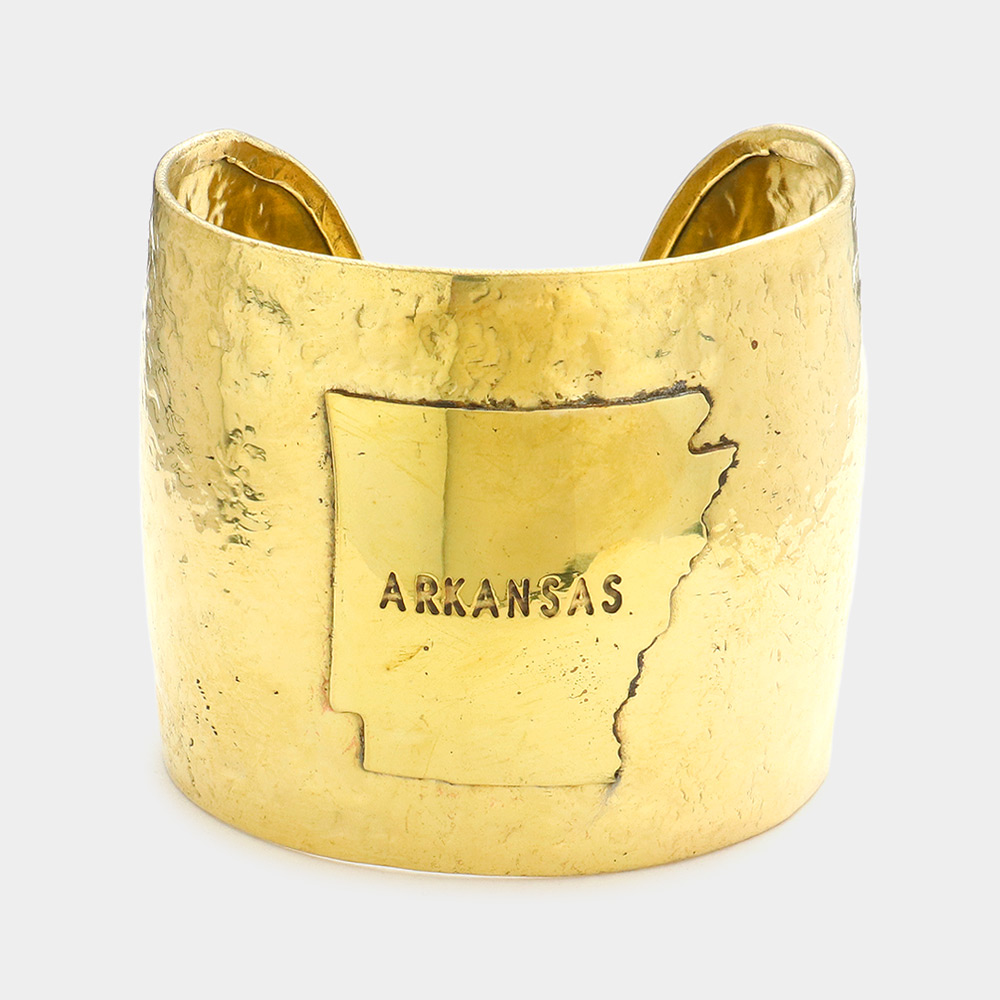 Arkansas State map Hammered Wide Metal Cuff Bracelet