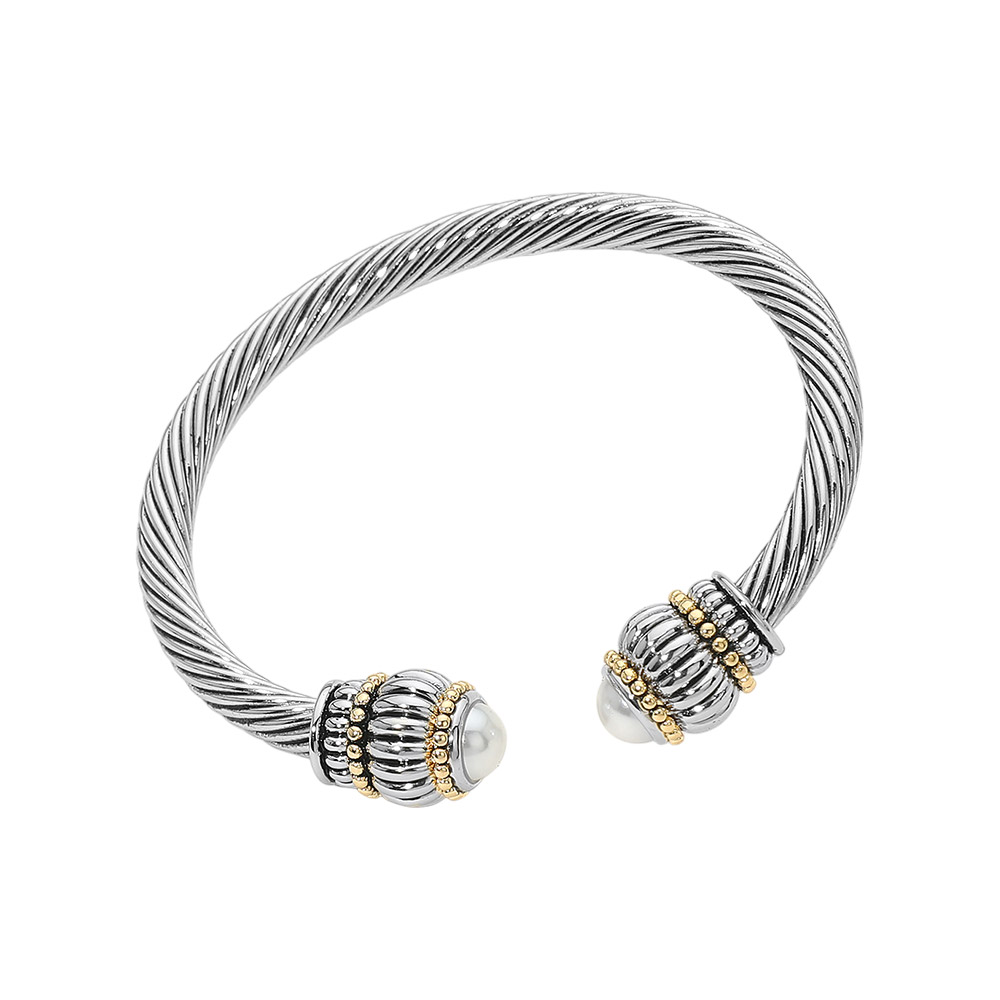 Details • Size : 0.5" H, 2.5"D • Cuff • Statement open cuff bracelet featuring a sculpted twisted cable design with refined rounded accent ends. Designed for easy slip-on wear, this bracelet delivers a bold yet timeless look ideal for everyday styling, gifting, or layering with other wrist pieces for elevated fashion appeal.
