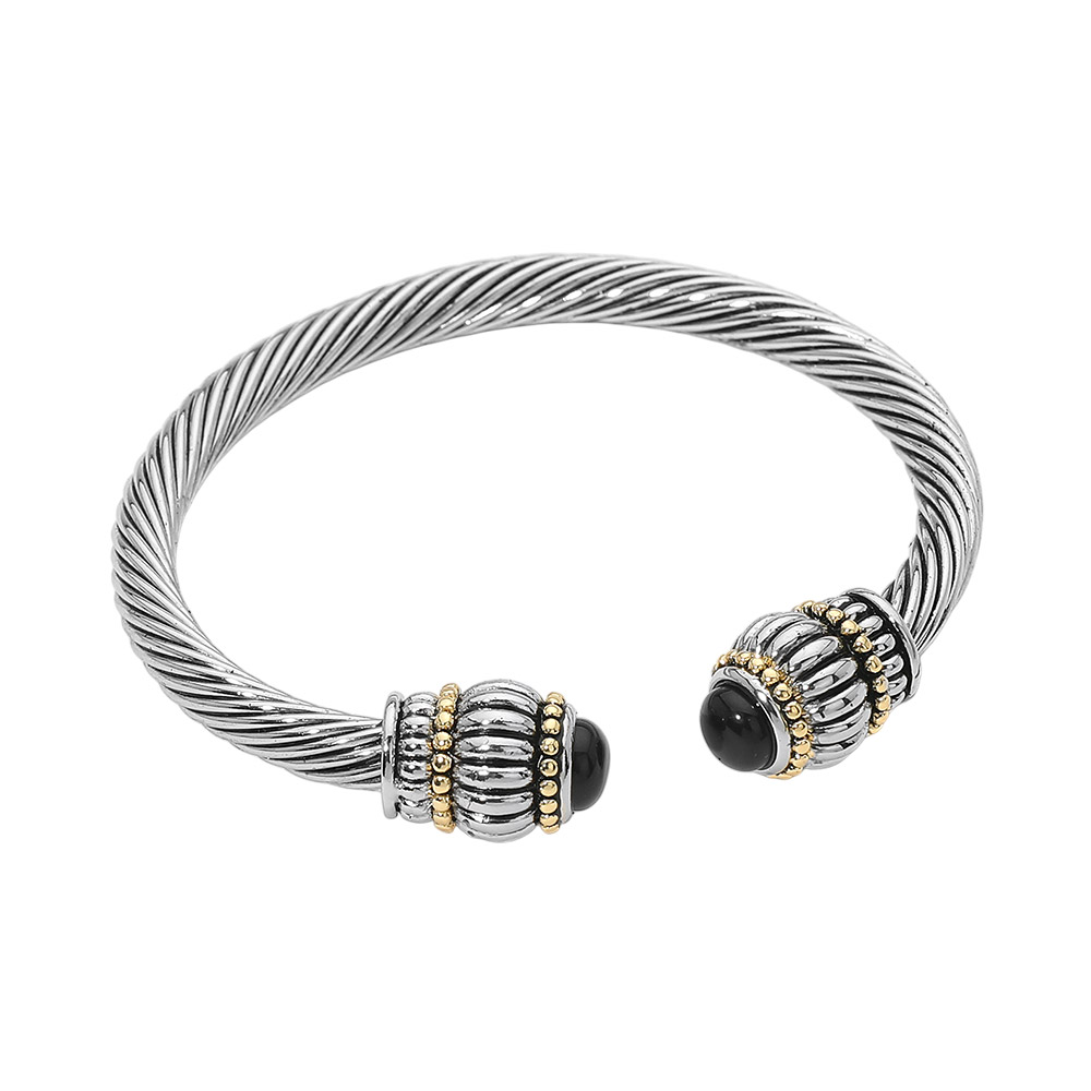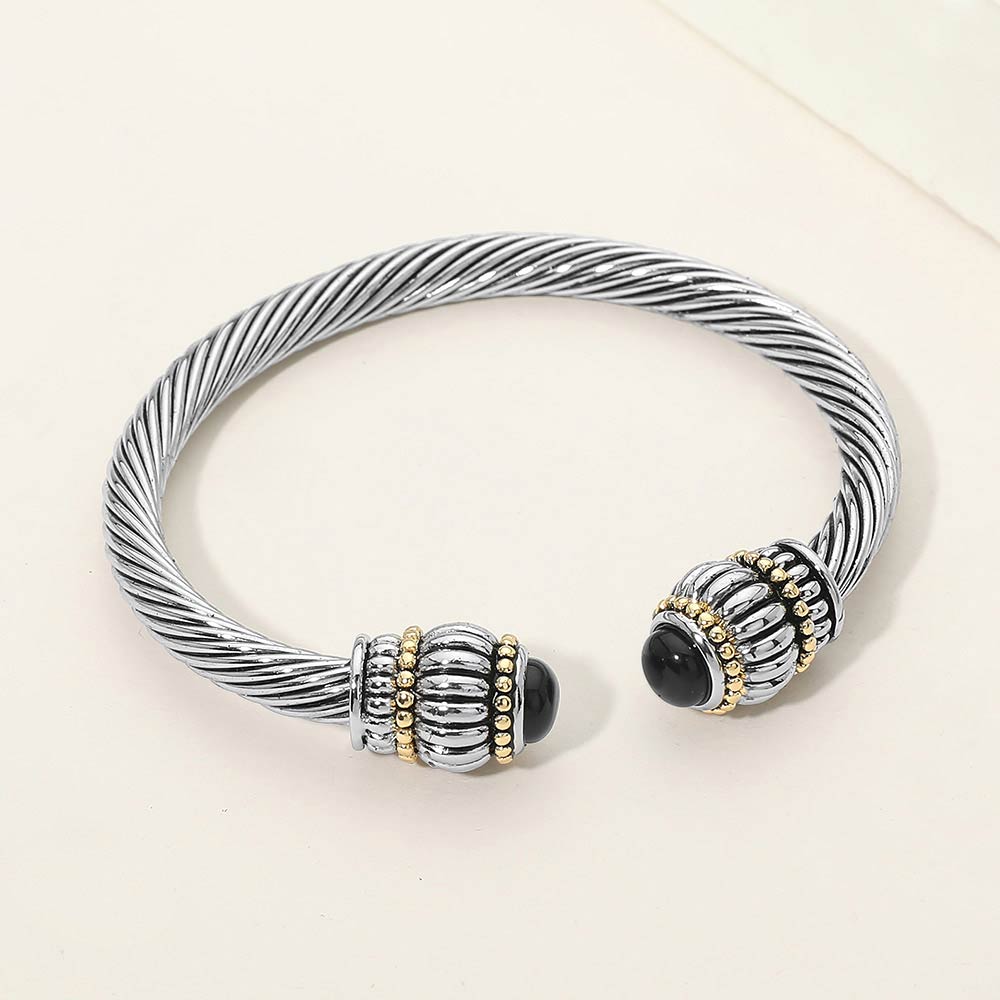 Details • Size : 0.5" H, 2.5"D • Cuff • Statement open cuff bracelet featuring a sculpted twisted cable design with refined rounded accent ends. Designed for easy slip-on wear, this bracelet delivers a bold yet timeless look ideal for everyday styling, gifting, or layering with other wrist pieces for elevated fashion appeal.