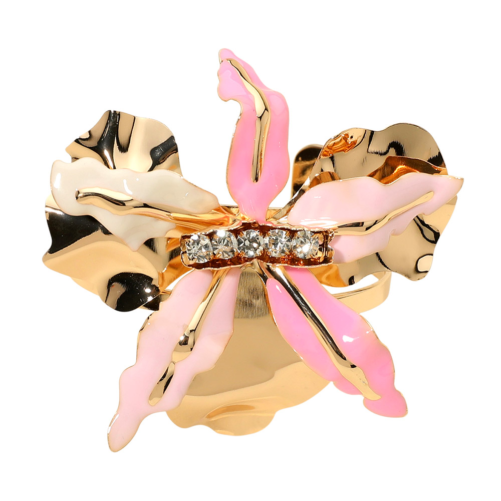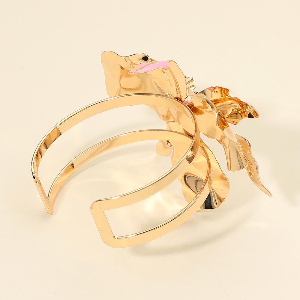 Details • Size : 3" H, 2.5" D • Cuff • Elegant statement cuff bracelet featuring a sculptural floral design with a sparkling center accent. Designed to elevate everyday outfits or special occasion looks, this eye-catching accessory adds dimension, shine, and modern charm to any jewelry collection. • Lead and Nickel Compliant