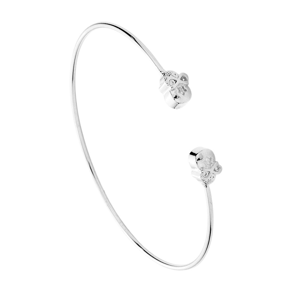 • Stylish skull cuff bracelet with an open bangle design, featuring dual skull accents for a bold statement. Lightweight and versatile, perfect for layering or wearing alone to showcase edgy and modern style.
