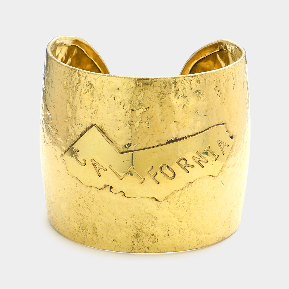California State map Hammered Wide Metal Cuff Bracelet