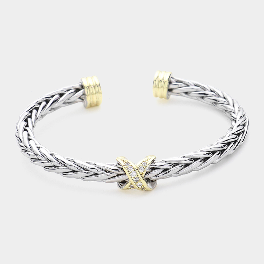 CZ Embellished Crisscross Metal Cuff Bracelet