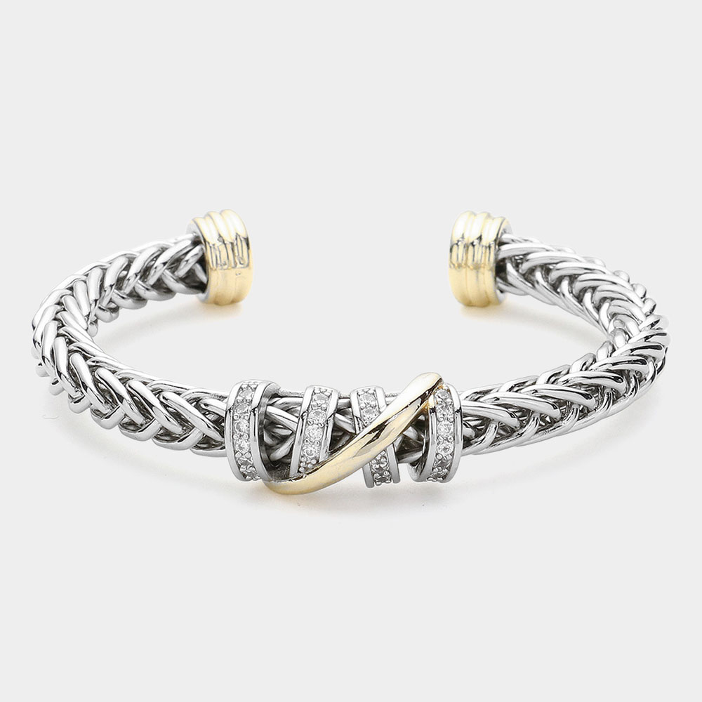 CZ Stone Paved Two Tone Pointed Cuff Bracelet
