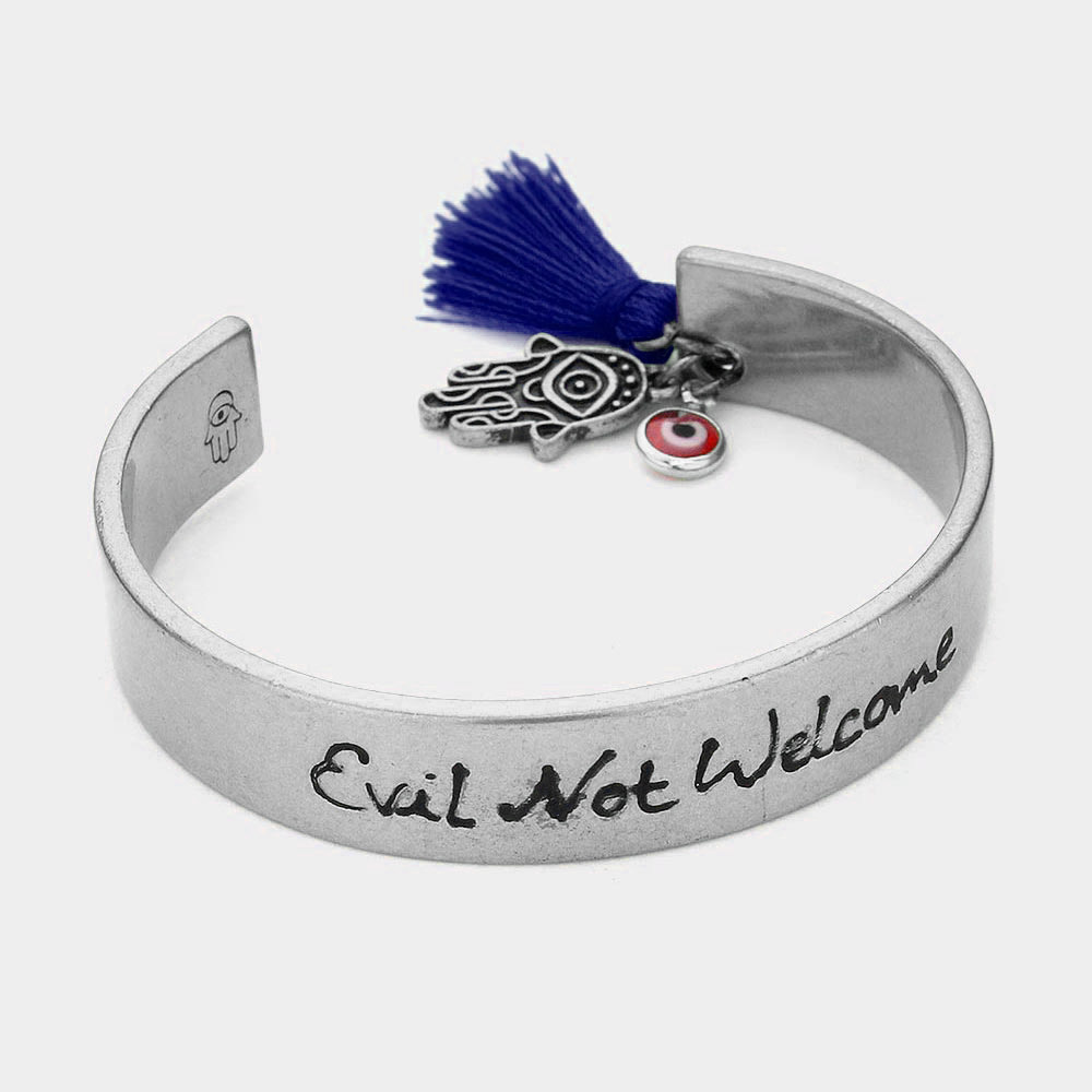 Evil Not Welcome Hamsa Hand Evil Eye Tassel Charm Cuff Bracelet