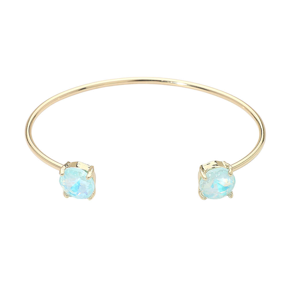 • This double stone open cuff bracelet features a sleek minimalist silhouette accented with two faceted stones for subtle sparkle. Designed for easy slip-on wear, it offers a modern, refined look that works for everyday styling or special occasions, making it a versatile choice for boutique jewelry collections and gift-ready displays.