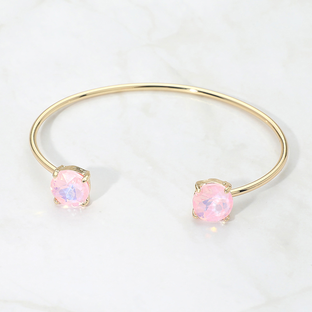 Details • Size : 0.4" H, 2.5" D • Cuff • This double stone open cuff bracelet features a sleek minimalist silhouette accented with two faceted stones for subtle sparkle. Designed for easy slip-on wear, it offers a modern, refined look that works for everyday styling or special occasions, making it a versatile choice for boutique jewelry collections and gift-ready displays. • Lead and Nickel Compliant