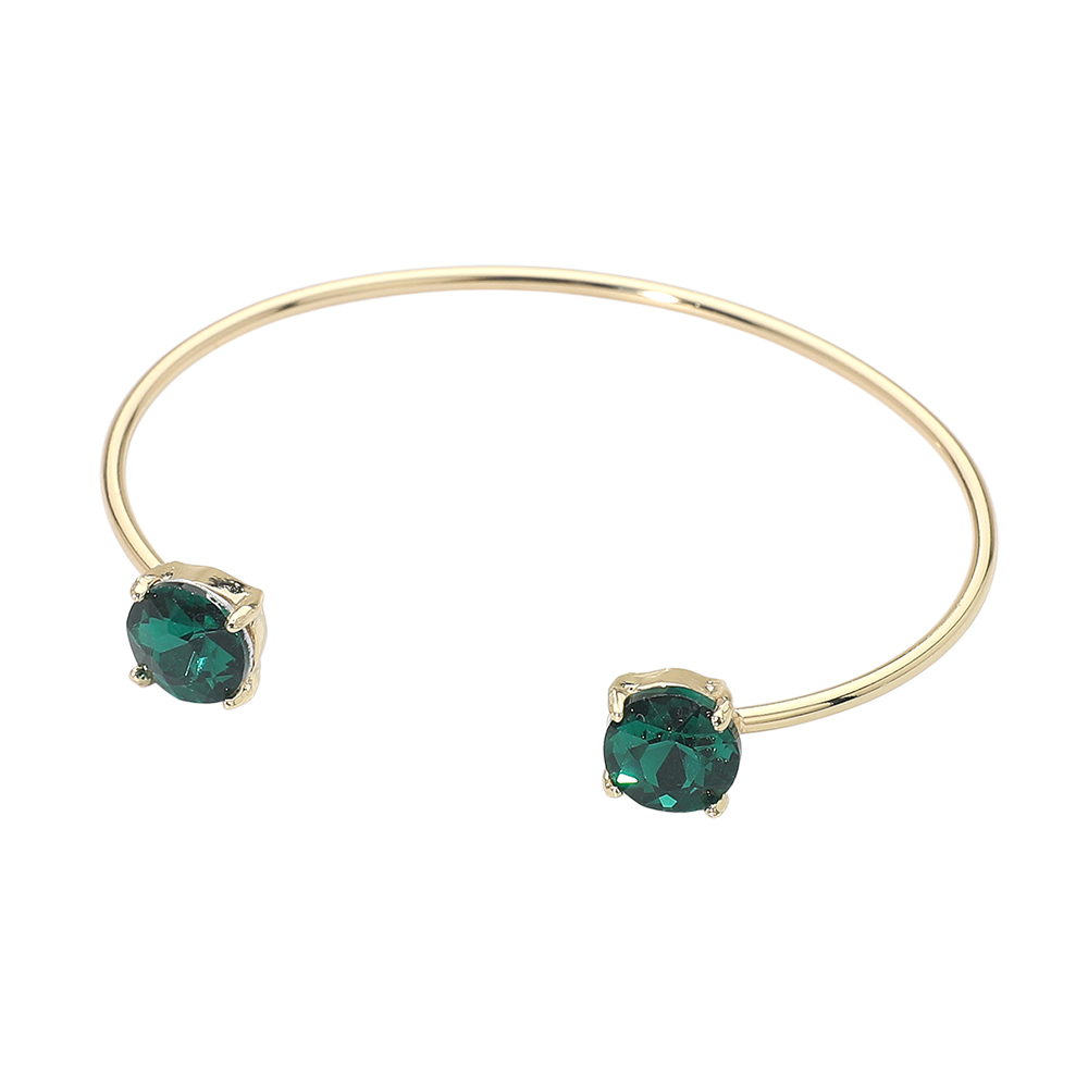Details • Size : 0.4" H, 2.5" D • Cuff • This double stone open cuff bracelet features a sleek minimalist silhouette accented with two faceted stones for subtle sparkle. Designed for easy slip-on wear, it offers a modern, refined look that works for everyday styling or special occasions, making it a versatile choice for boutique jewelry collections and gift-ready displays. • Lead and Nickel Compliant