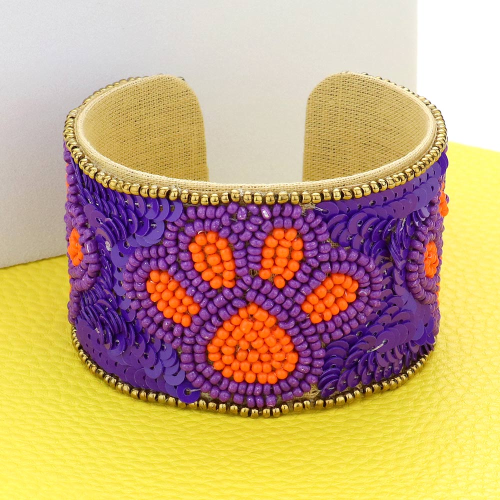 Game Day Sequin Seed Beaded Paw Accented Cuff Bracelet Game Day Sequin Seed Beaded Paw Accented Cuff Bracelet Game Day Sequin Seed Beaded Paw Accented Cuff Bracelet