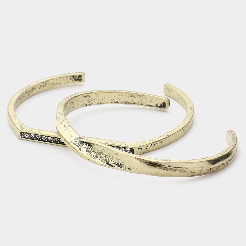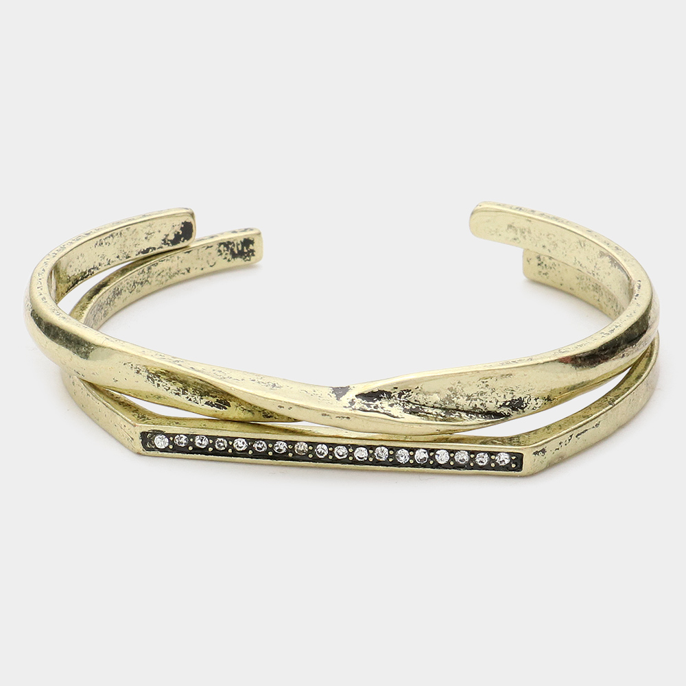 Layered Crystal Detail Vintage Metal Cuff Bracelet