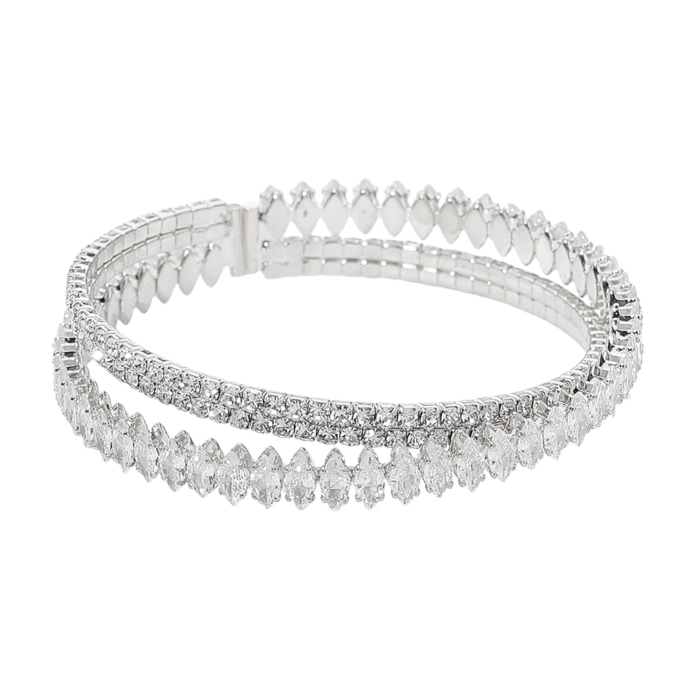 Marquise CZ Stone Dual Row Adjustable Evening Cuff Bracelet Marquise CZ Stone Dual Row Adjustable Evening Cuff Bracelet