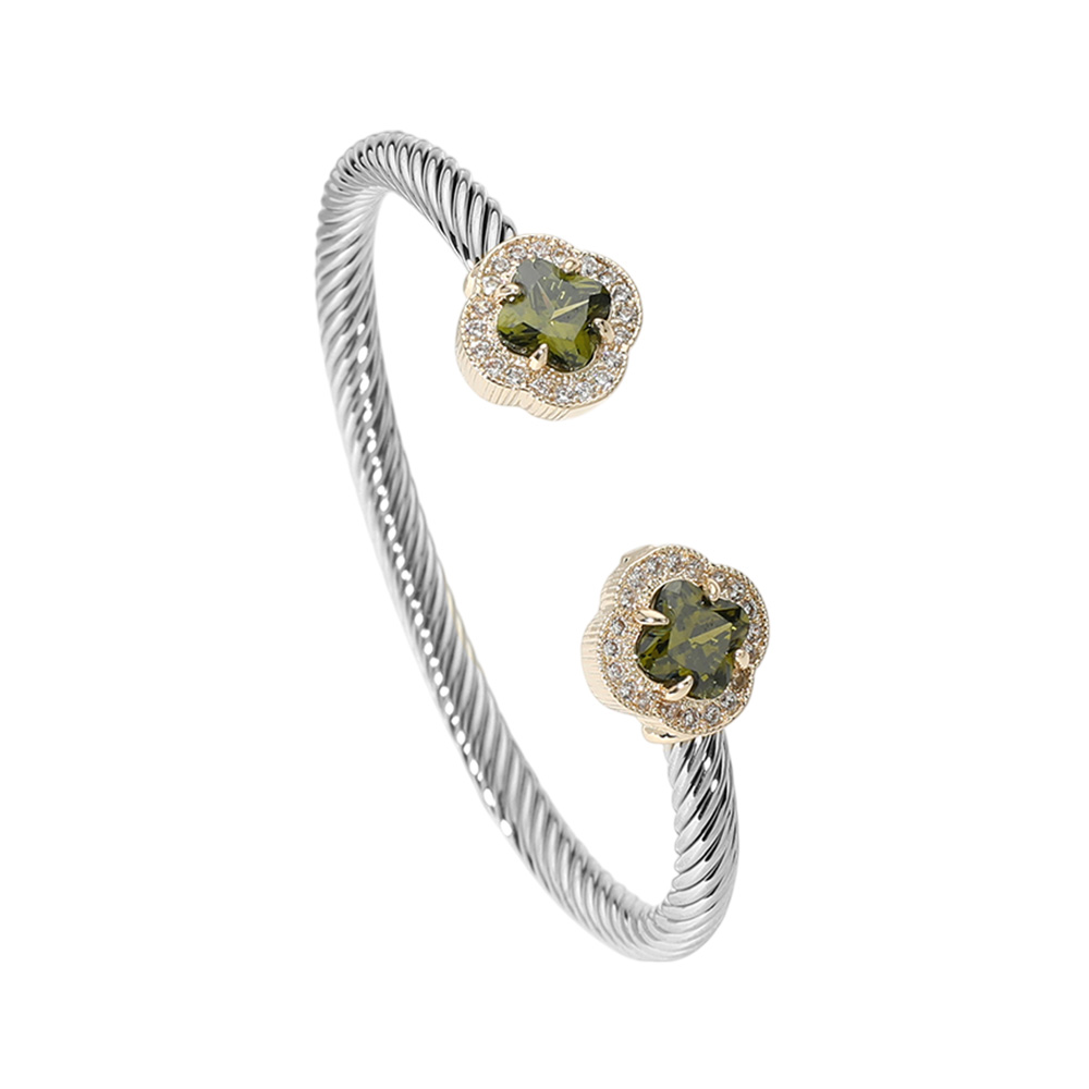 Quatrefoil CZ Stone Tip Twisted Cuff Bracelet