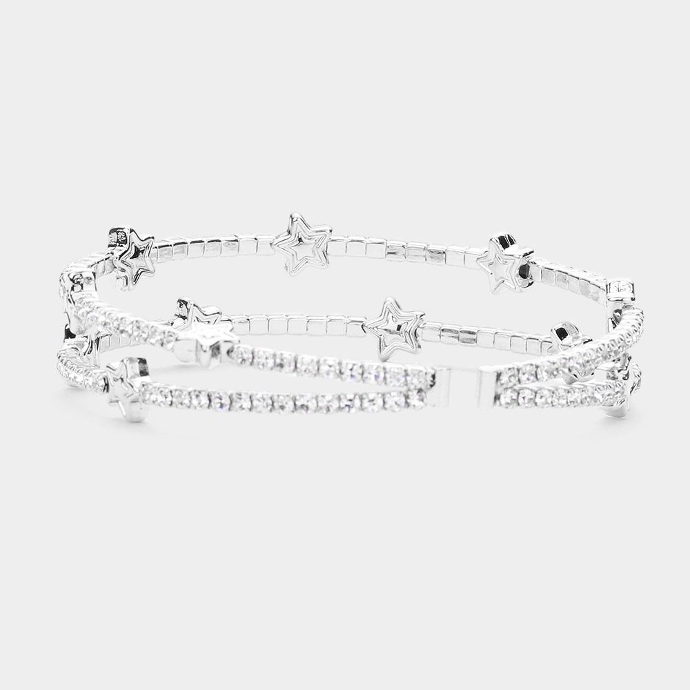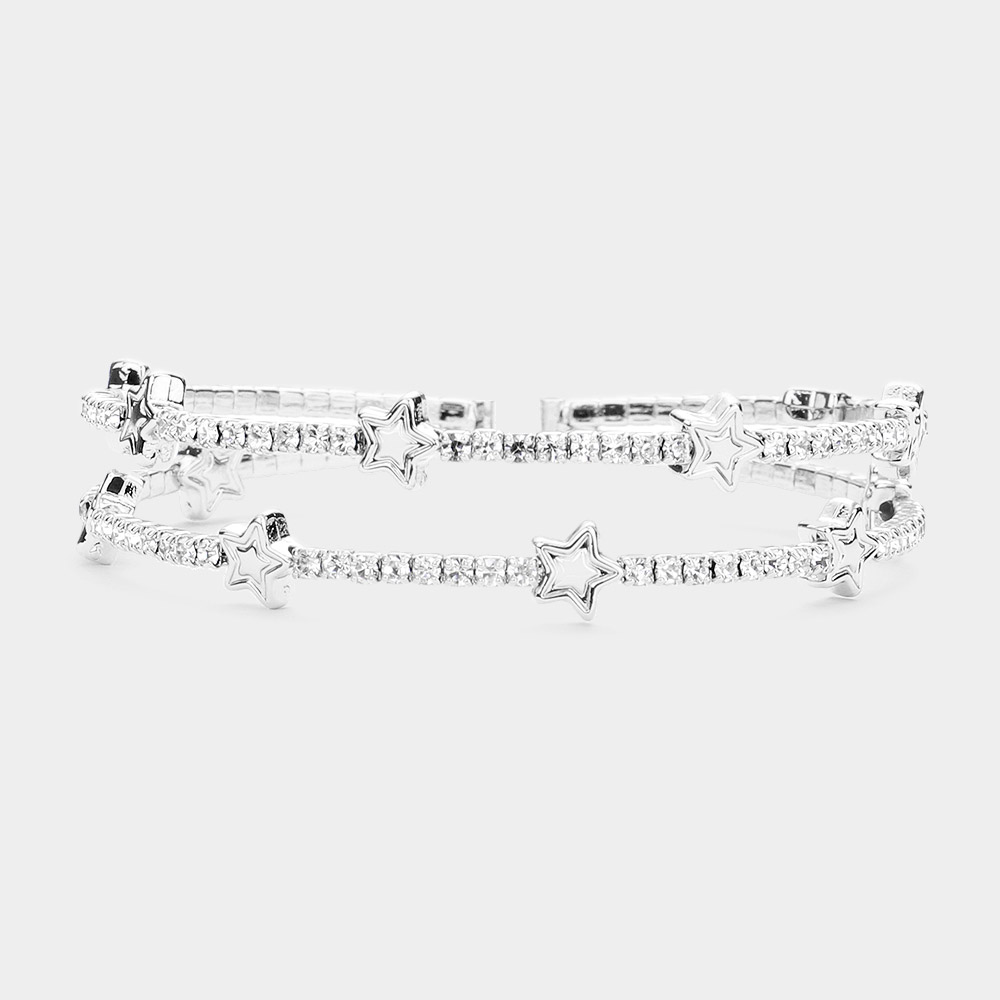 Rhinestone Embellished Metal Star Point Cuff Bracelet