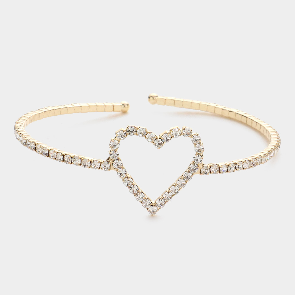 Stainless Steel Puffy Heart Charm Toggle Bracelet