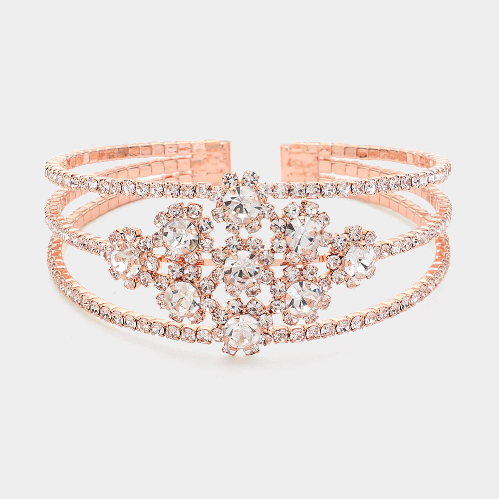 Round Stone Accented Rhinestone Paved Split Cuff Bracelet