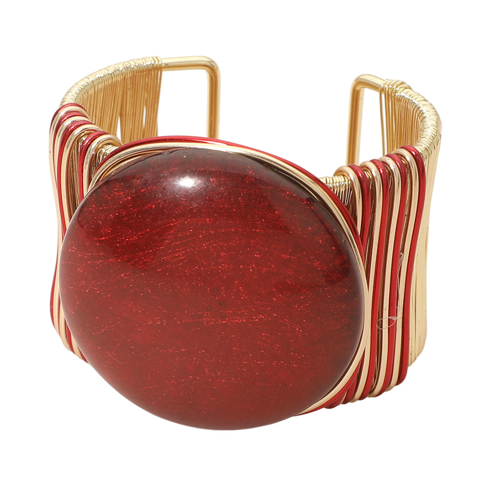 • Statement cuff bracelet featuring a smooth oval stone centerpiece framed by layered wire detailing. Designed with an open cuff silhouette for easy styling, this bold accessory adds artisanal texture and visual impact to everyday looks, boutique assortments, and gift-ready jewelry collections.