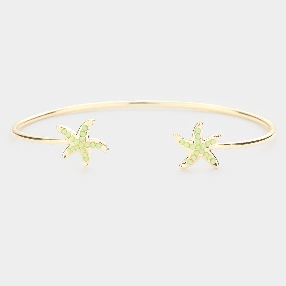 Seed Bead Embellished Metal Starfish Tip Cuff Bracelet