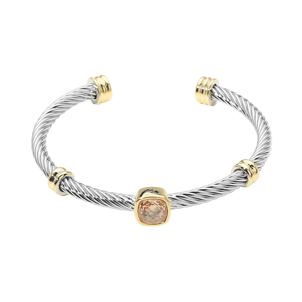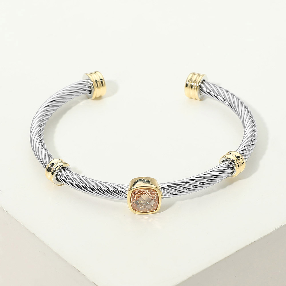 Square Stone Bezel Accent Two Tone Twisted Cable Cuff Bracelet