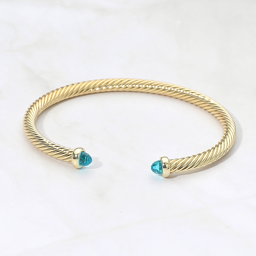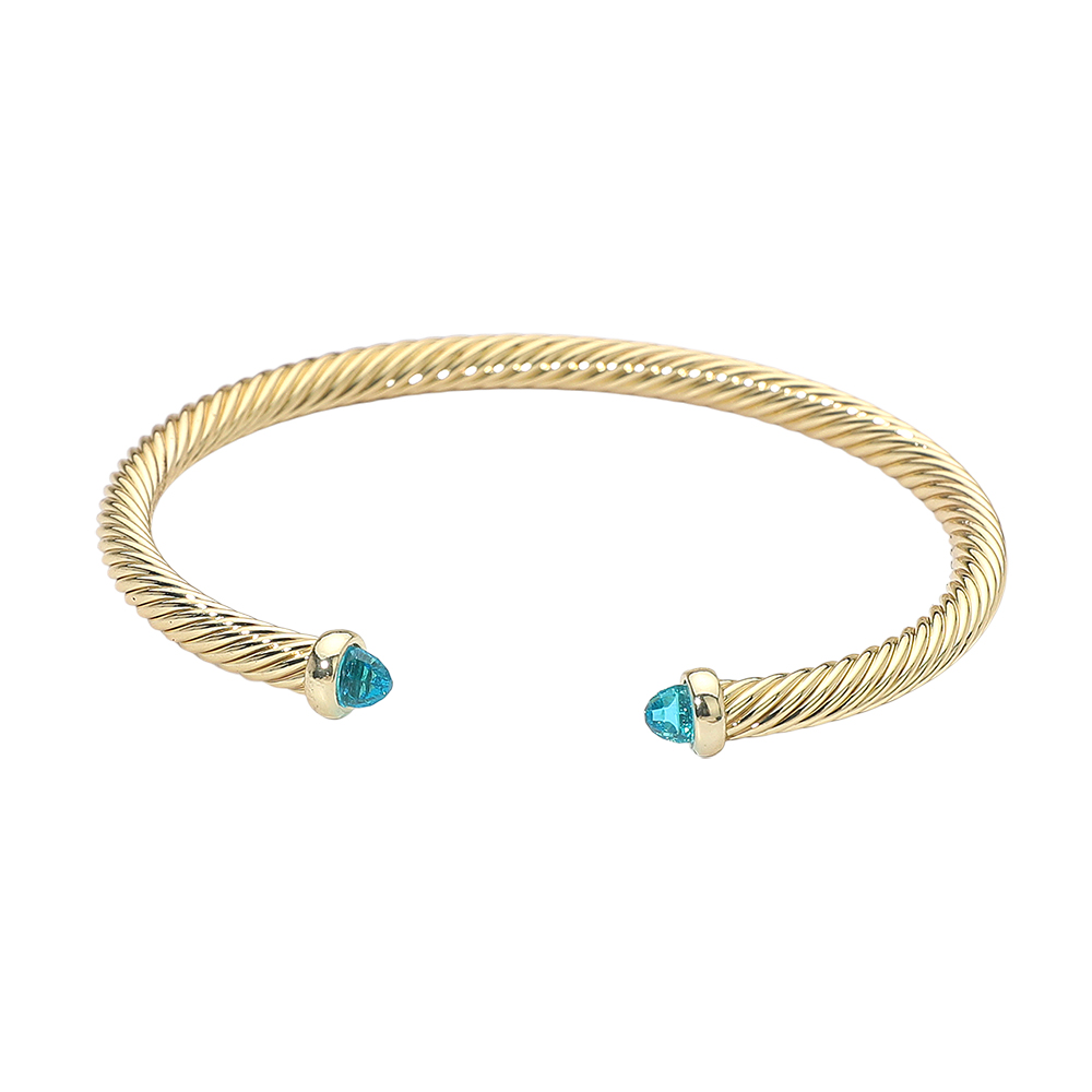 Stone Tip Twisted Cable Cuff Bracelet