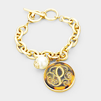 14K Gold Plated CZ Emerald Cut Stone Cluster Link Evening Toggle Bracelet
