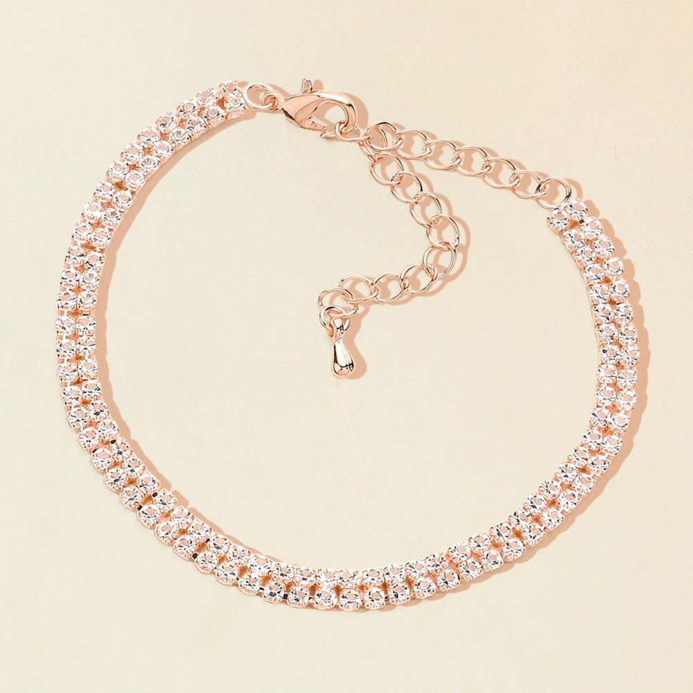 Details • Size : 0.2" H, 7" + 2" L • Lobster Clasp Closure • This double row crystal chain bracelet radiates classic elegance and sparkle. Designed for a refined, polished look, it enhances any outfit with shimmering detail. Perfect for weddings, parties, or everyday sophistication, this bracelet is a timeless piece for effortless glamour. • Lead and Nickel Compliant • CZ Cubic Zirconia
