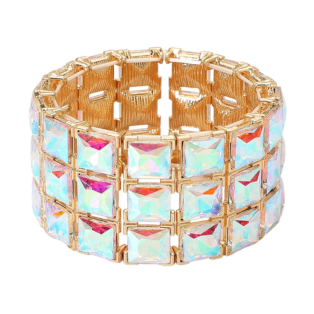 3-Rows Square Stone Stretch Evening Bracelet 3-Rows Square Stone Stretch Evening Bracelet
