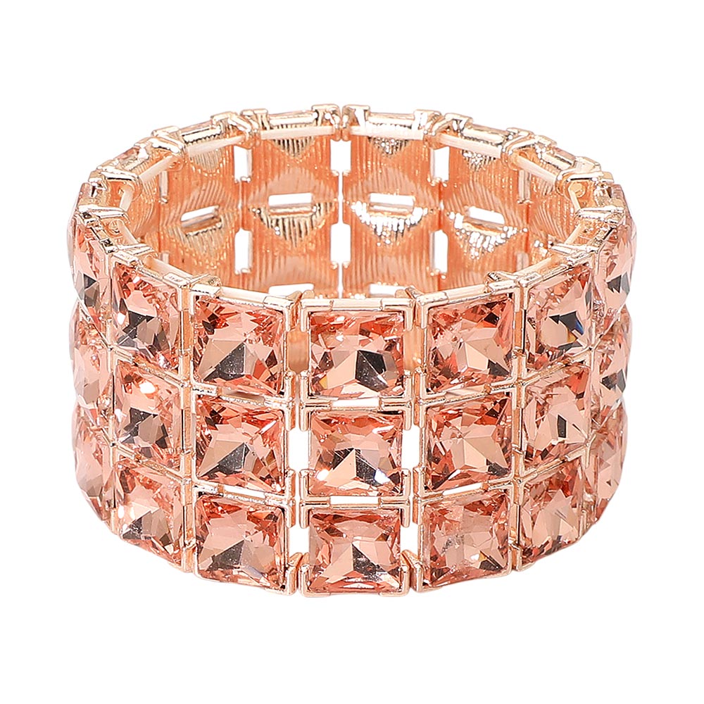 3-Rows Square Stone Stretch Evening Bracelet 3-Rows Square Stone Stretch Evening Bracelet