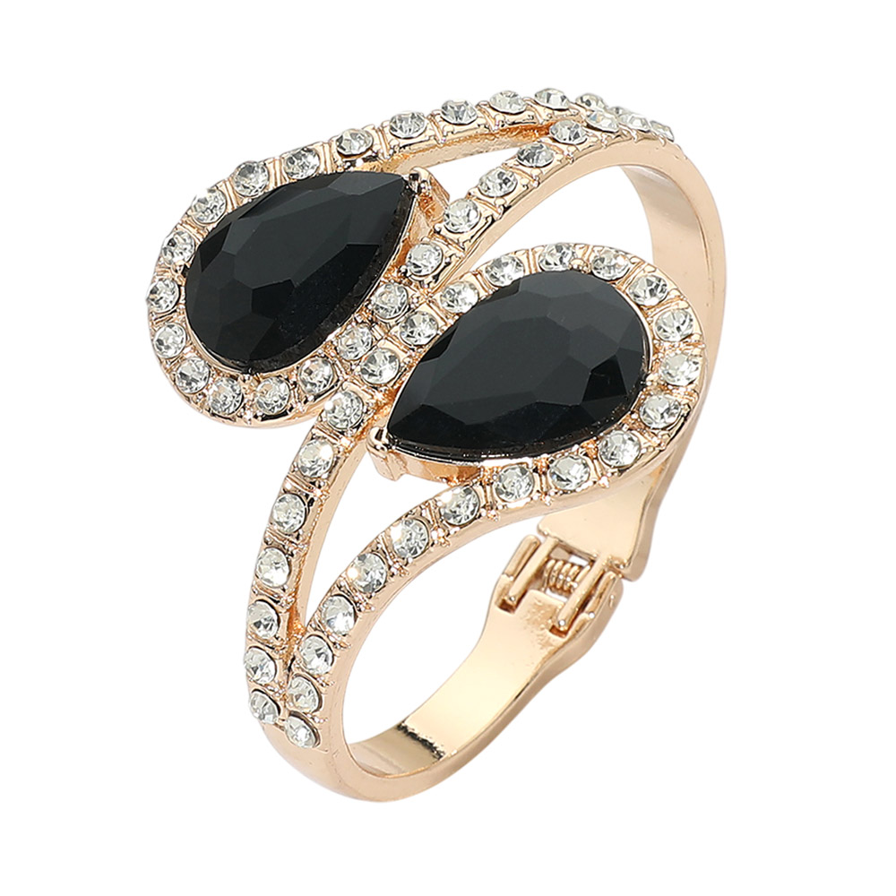 • Eye-catching hinged statement ring featuring a double teardrop crystal design with pavĂ©-style accents. The open layered look creates bold dimension while offering a comfortable fit. Ideal for fashion-forward styling, evening outfits, events, gifting, or boutique jewelry collections. Perfect for customers seeking dramatic sparkle with an elegant silhouette.