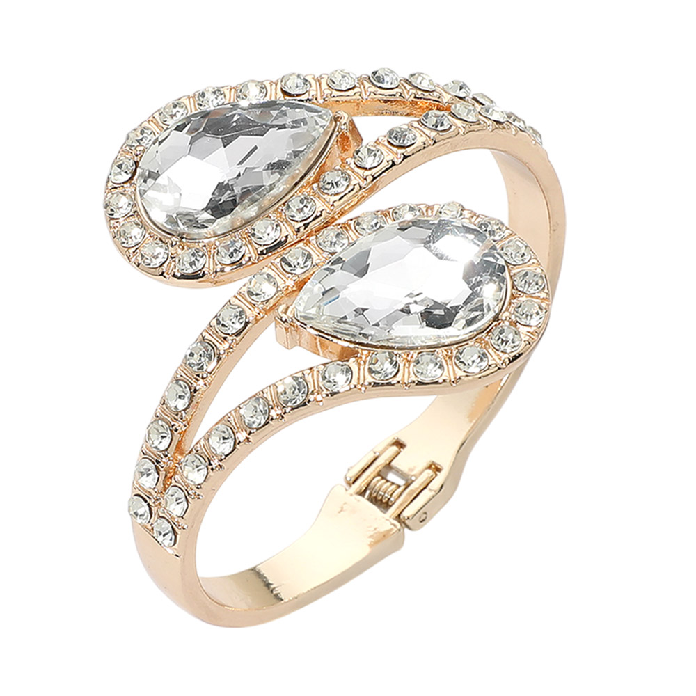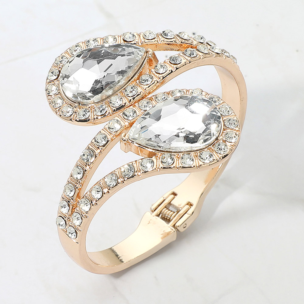 Bold Double Teardrop Tip Wrap Hinged Bangle Evening Bracelet
