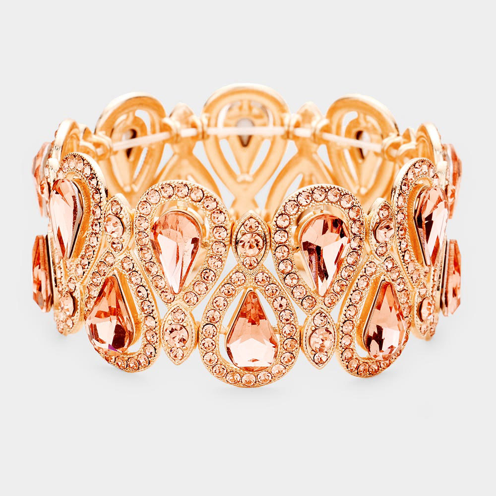 Crystal Glass Teardrop Evening Stretch Bracelet