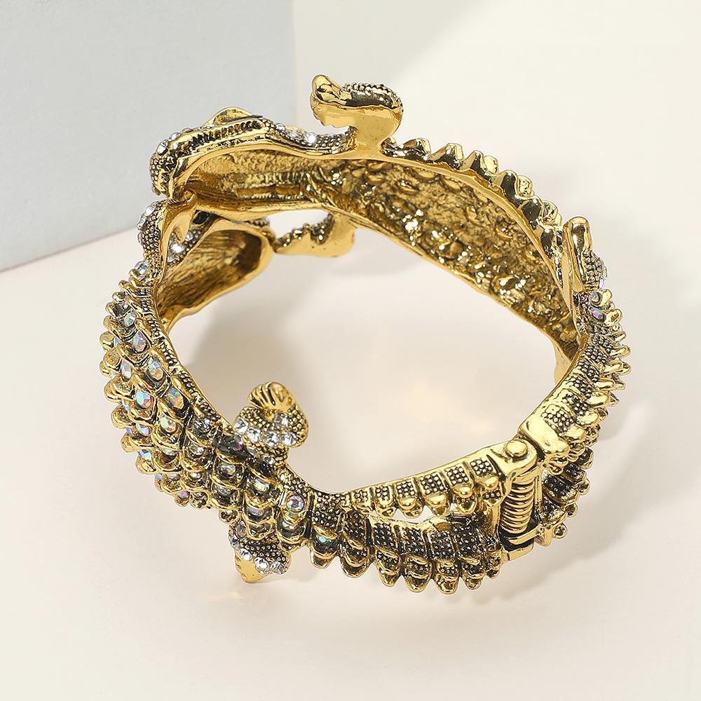 Crystal Rhinestone Double Crocodile/Alligator  Evening Hinged Cuff  Bracelet