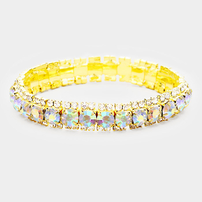 Rectangle Stone Cluster Link Adjustable Evening Bracelet