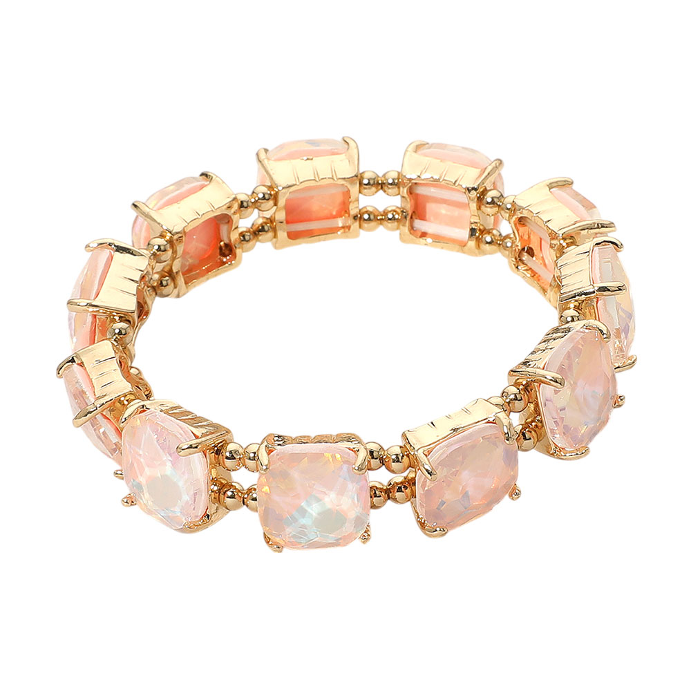 Details • Size : 0.4" H • Stretchable • Add a touch of shimmer to your look with this stretch bracelet featuring faceted square gemstones in a double-row design. Perfect for both casual wear and special occasions, it offers a blend of sophistication and comfort with its easy slip-on fit. • Lead and Nickel Compliant