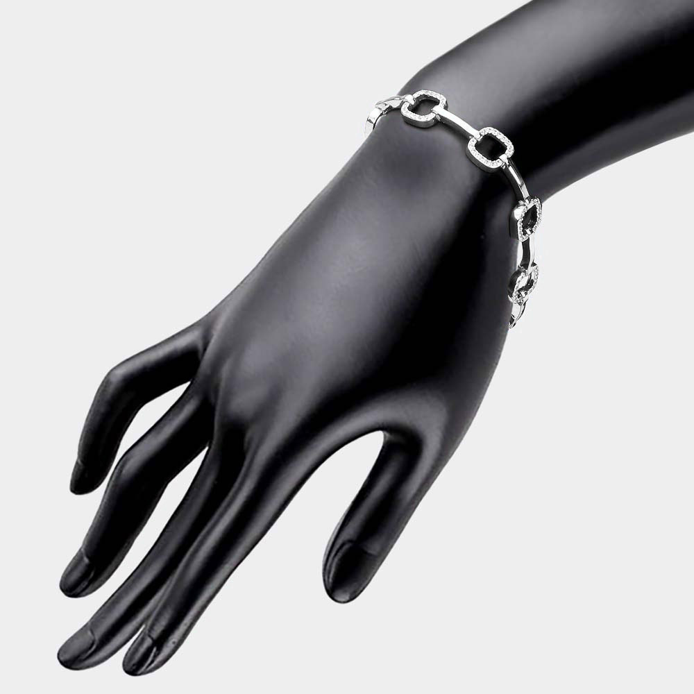 CZ Embellished Open Square Metal Bar Link Evening Bracelet