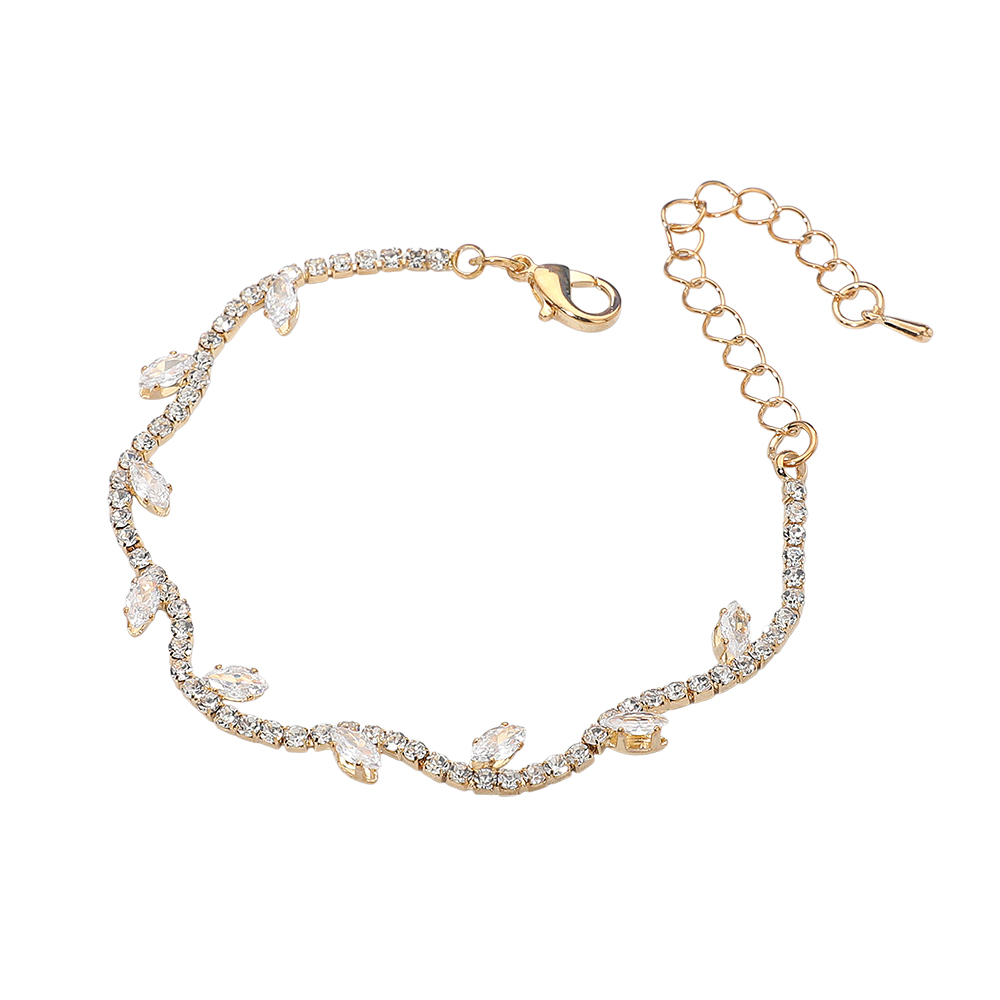 • Graceful tennis bracelet featuring marquise-shaped cluster vine accents along a slim, curved cz band. The delicate structure and adjustable clasp create a refined silhouette that complements any elegant or formal style, adding subtle brilliance to wristwear collections.