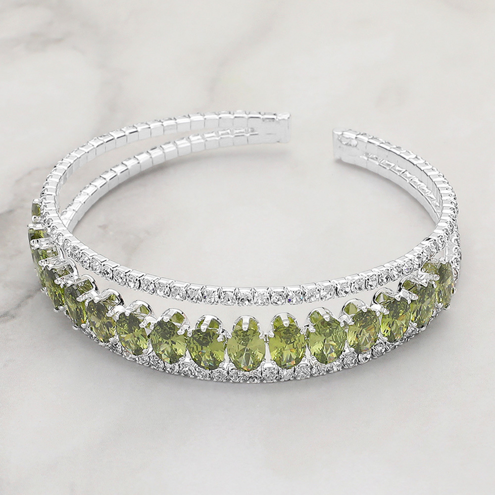 CZ Oval Stone Accented Evening Cuff Bracelet