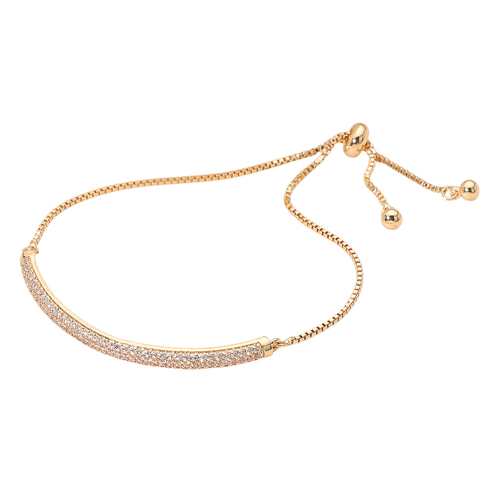 CZ Stone Pave Bar Accent Adjustable Evening Bracelet