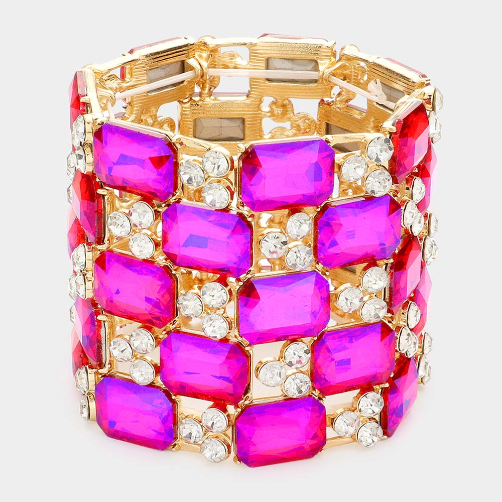 Emerald Cut Crystal Stretch Evening Bracelet