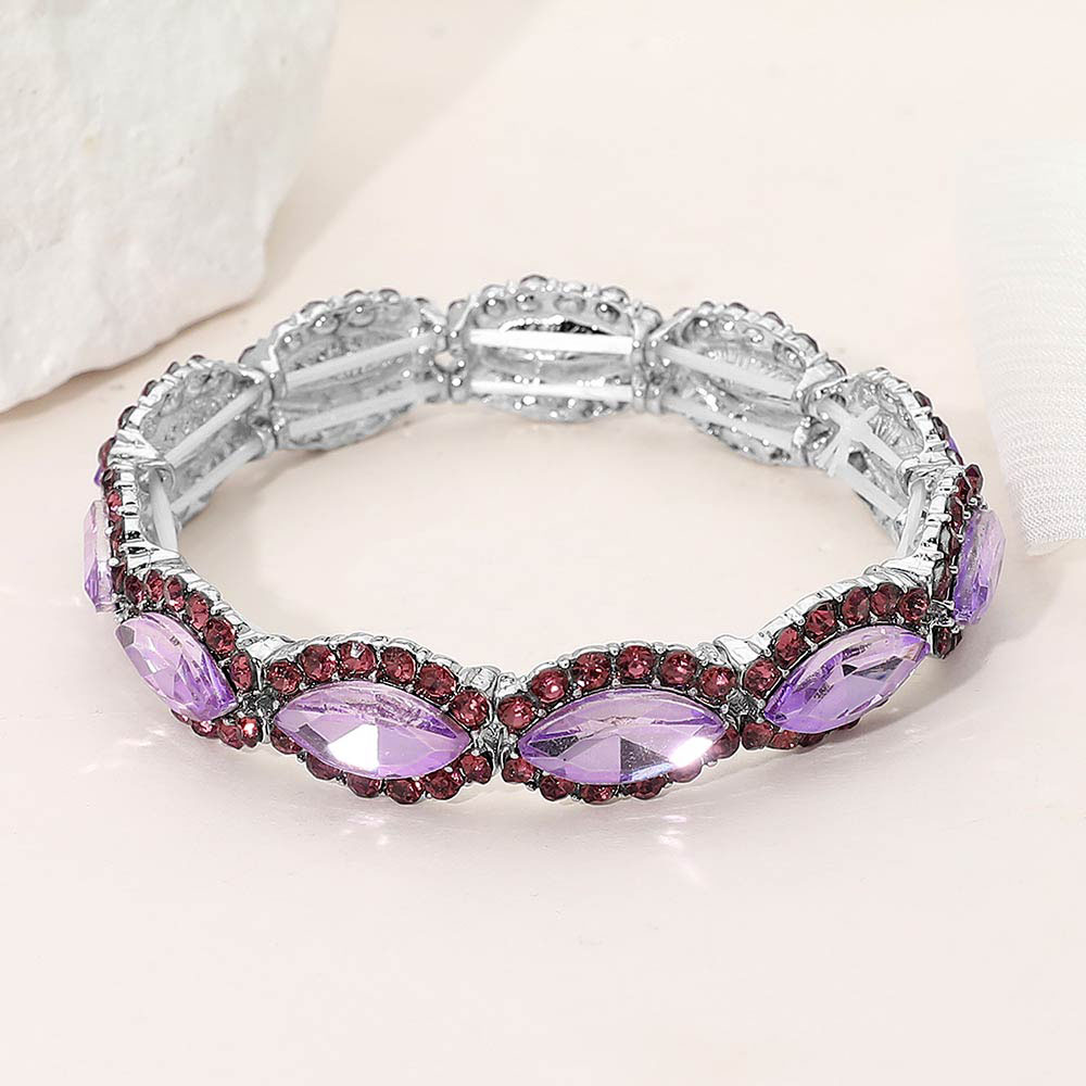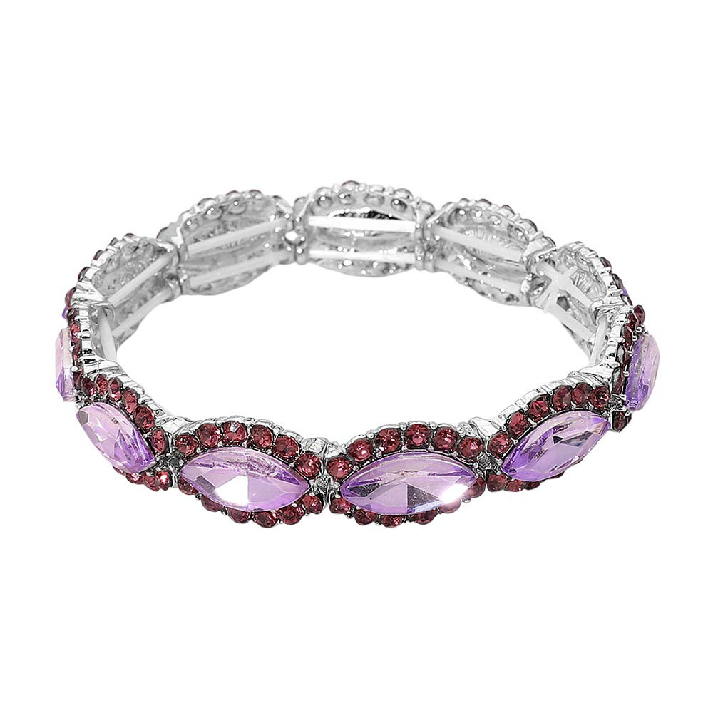 Faceted Marquise Cut Stone Beaded Stretch Evening Bracelet