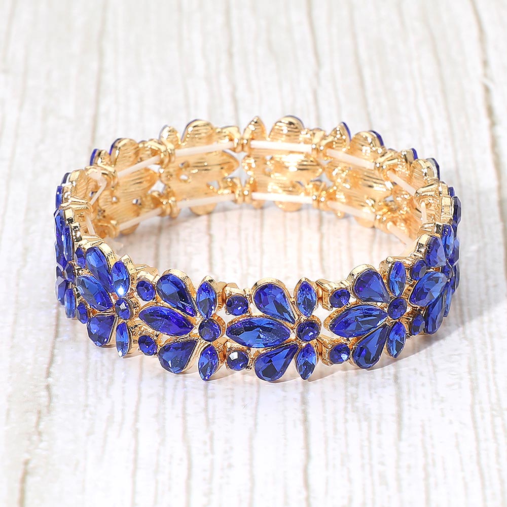 Marquise Stone Cluster Embellished Flower Stretch Evening Bracelet